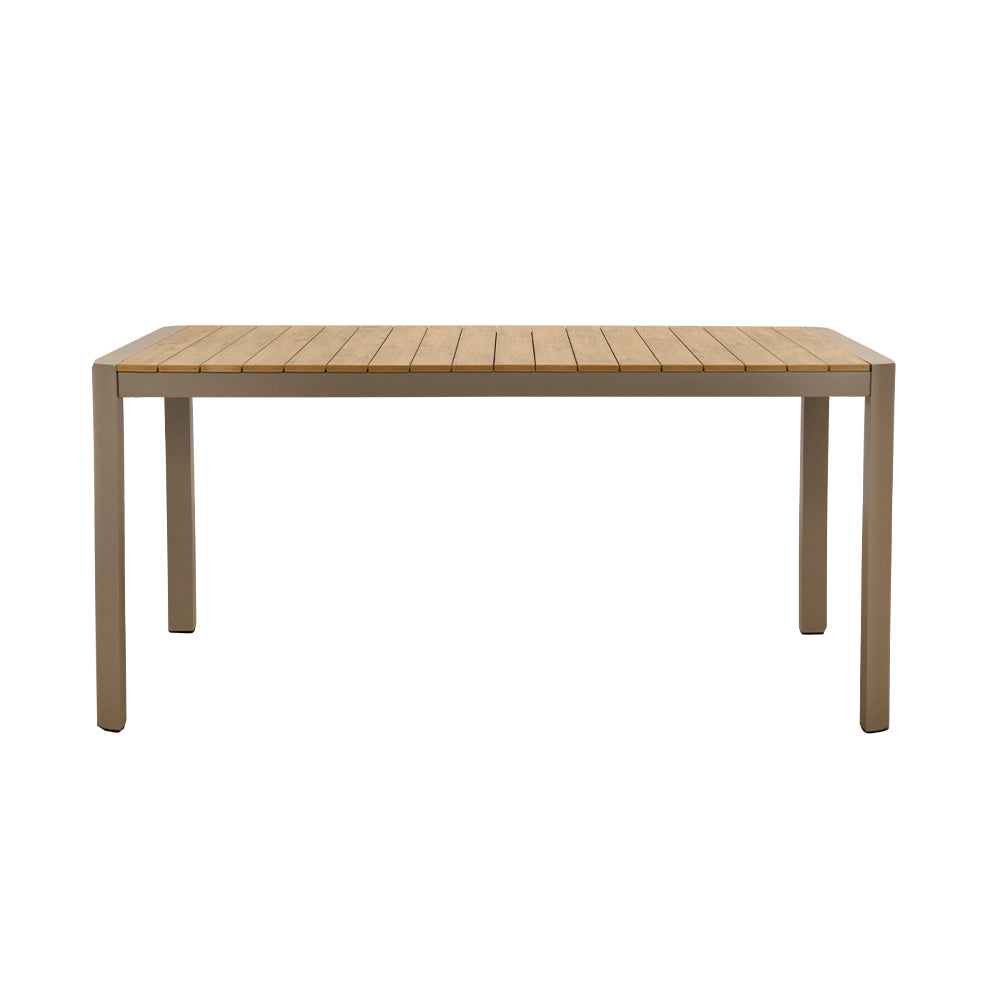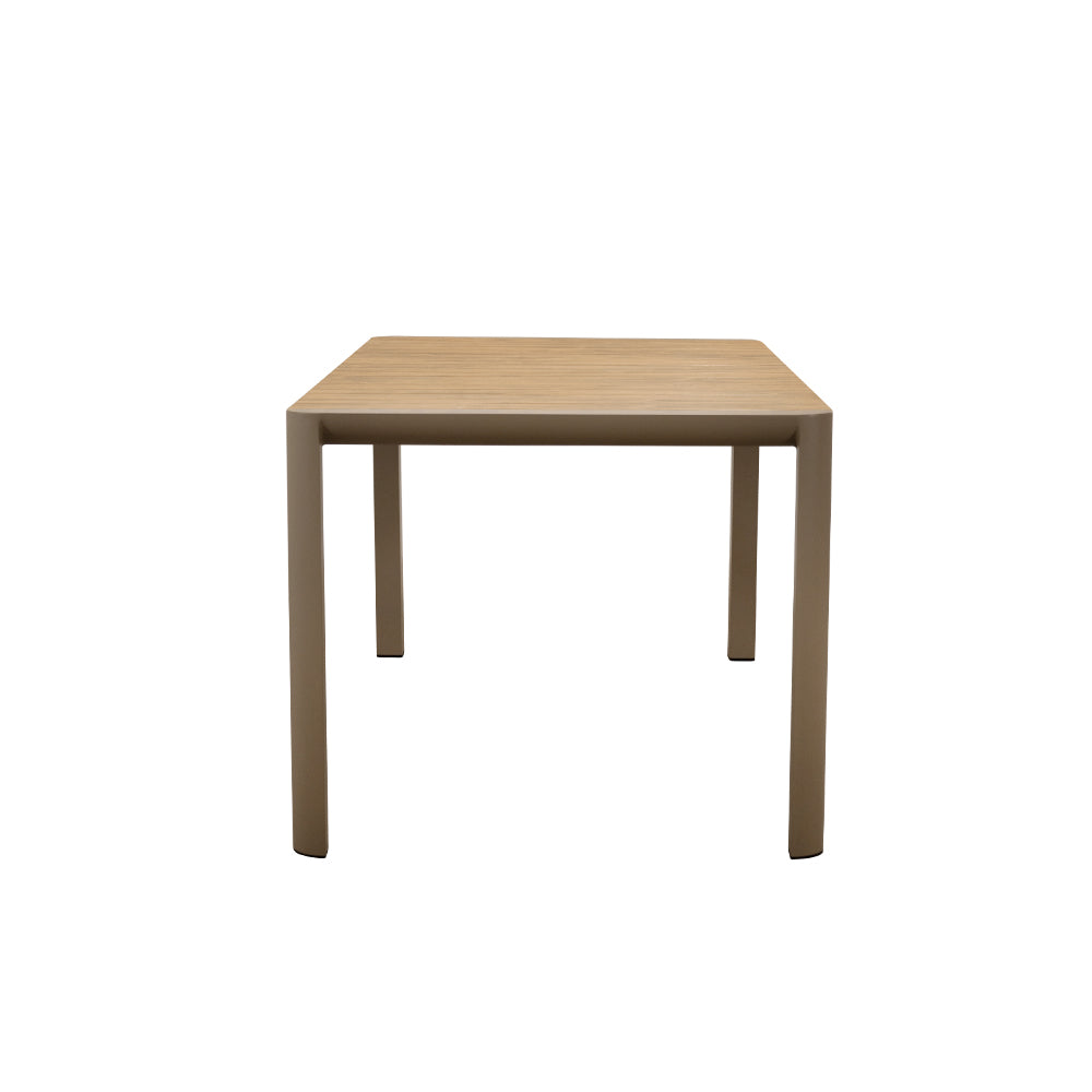 Diseño moderno y durabilidad para exteriores. La Mesa Mason combina la resistencia del aluminio con la calidez de la madera de teca, creando una pieza elegante y funcional. Perfecta para uso en intemperie, es la elección ideal para terrazas y proyectos que buscan estilo contemporáneo con materiales de alto rendimiento.