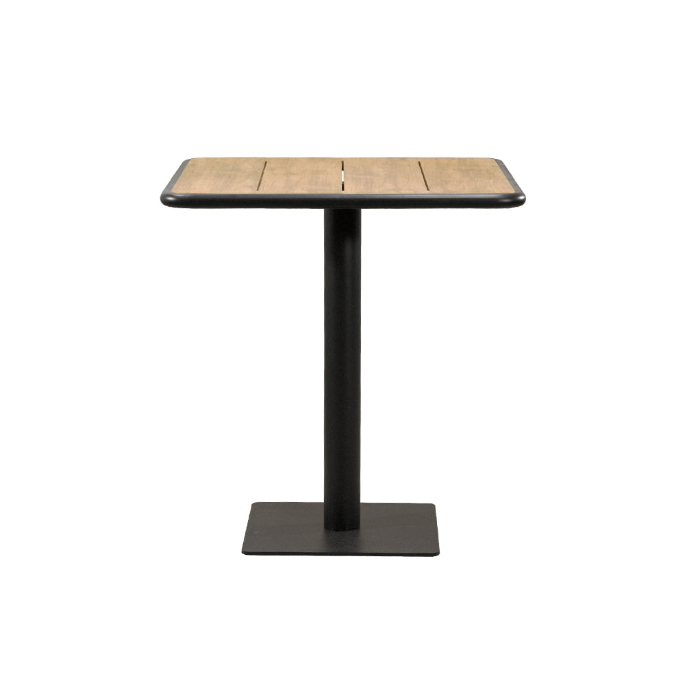 Diseño contemporáneo y resistente. La Mesa Tomás combina la nobleza de la teca en su tono natural con la estructura de aluminio en acabado negro, creando un contraste elegante y atemporal. Perfecta para uso en intemperie, esta mesa ofrece durabilidad y estilo, ideal para proyectos residenciales u hoteleros que buscan un mobiliario de alto nivel para exteriores.