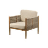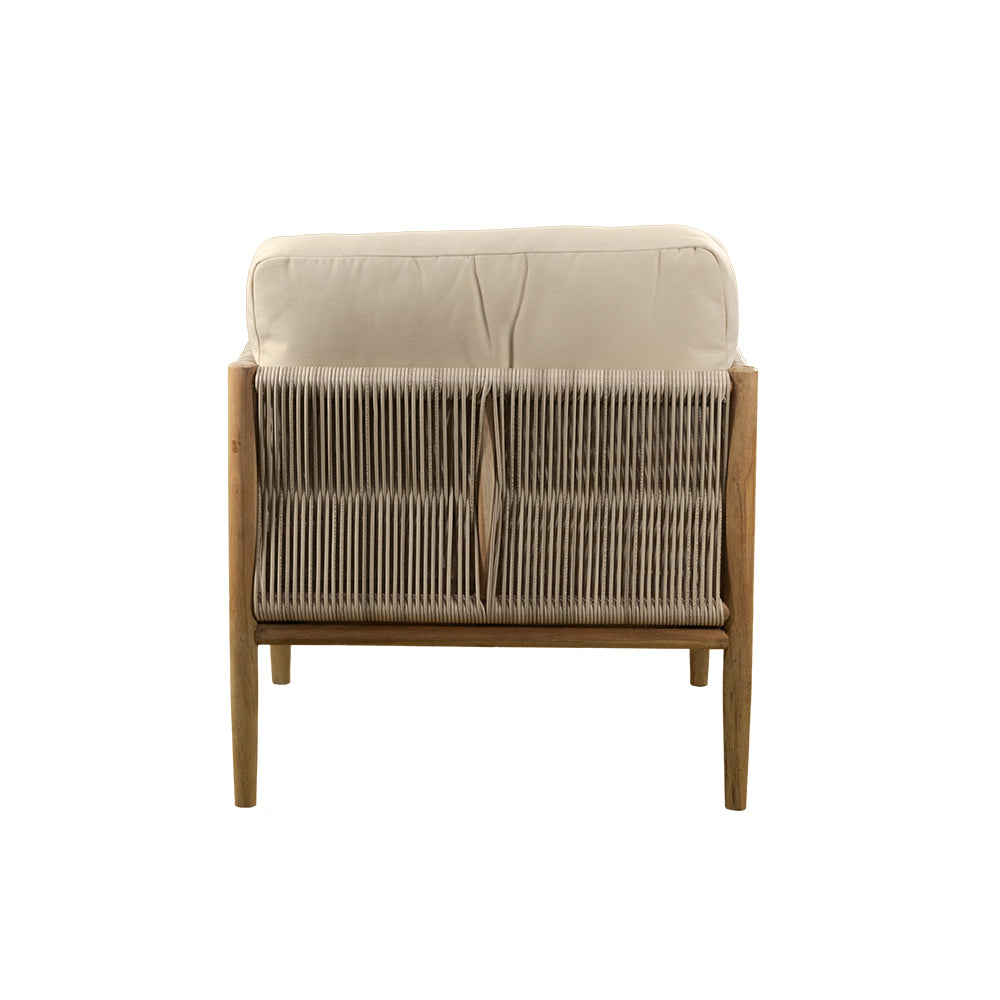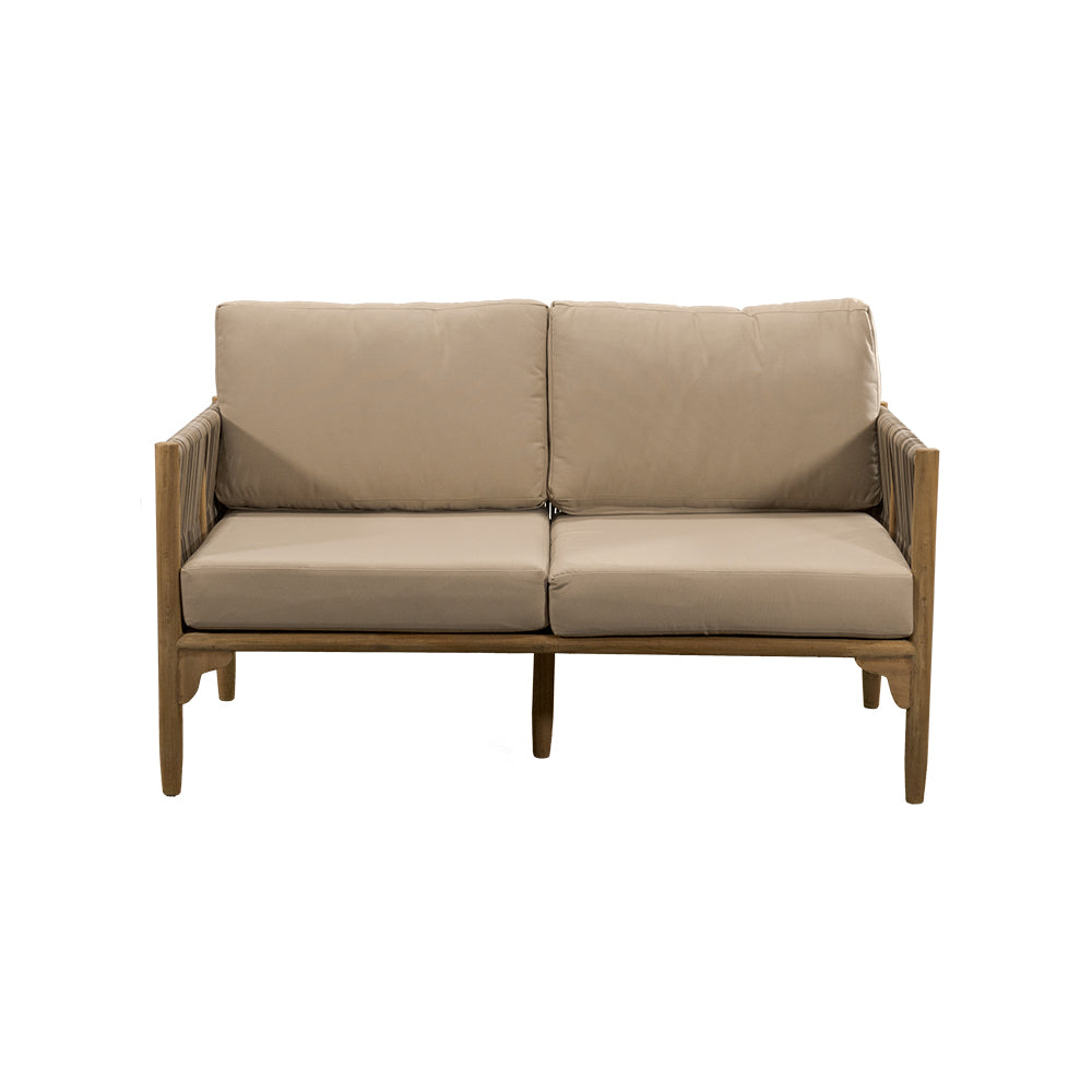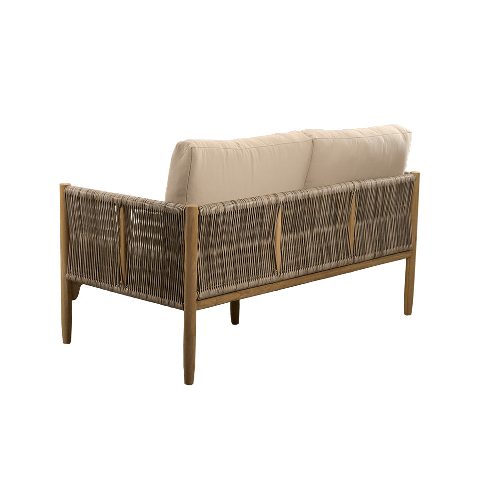 La Sala Livy es un conjunto de 3 piezas compuesto por un love seat y dos sillones individuales, diseñados en teca con tejido de polyrattan en color banana. Ideal para uso en terraza, aporta calidez, confort y un estilo natural que se adapta tanto a espacios residenciales como a proyectos hoteleros que buscan mobiliario con personalidad y durabilidad.