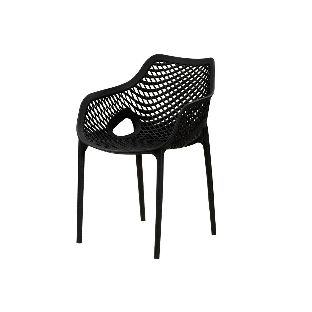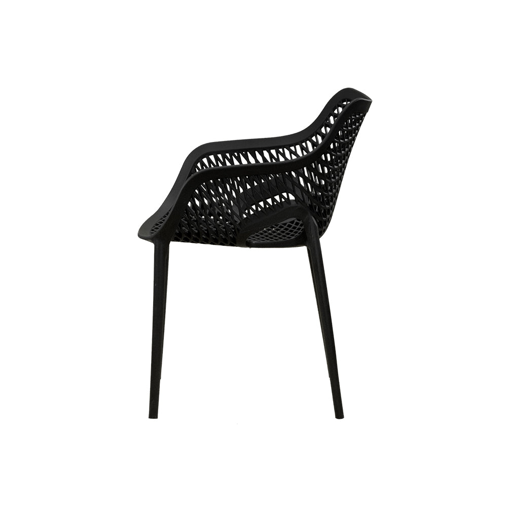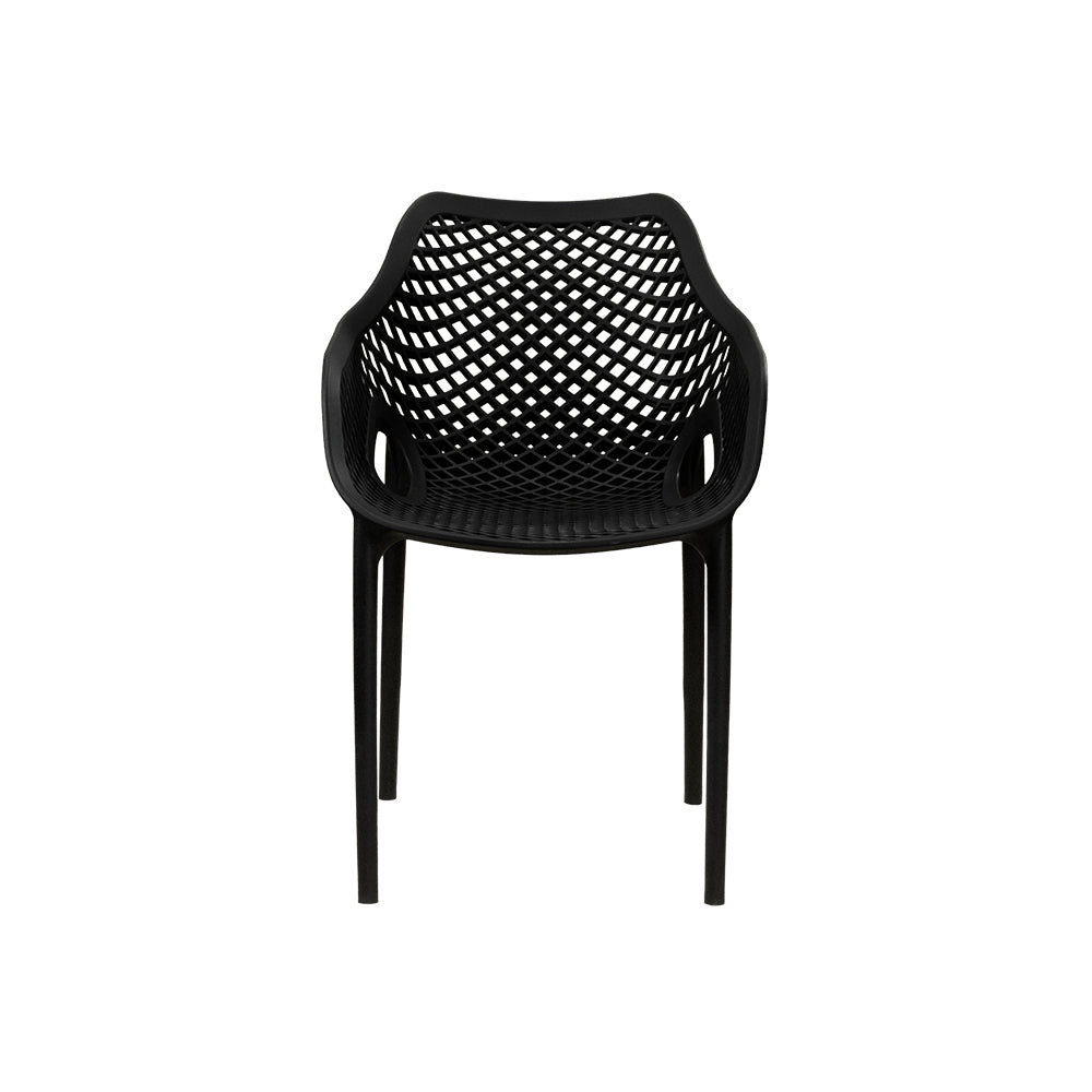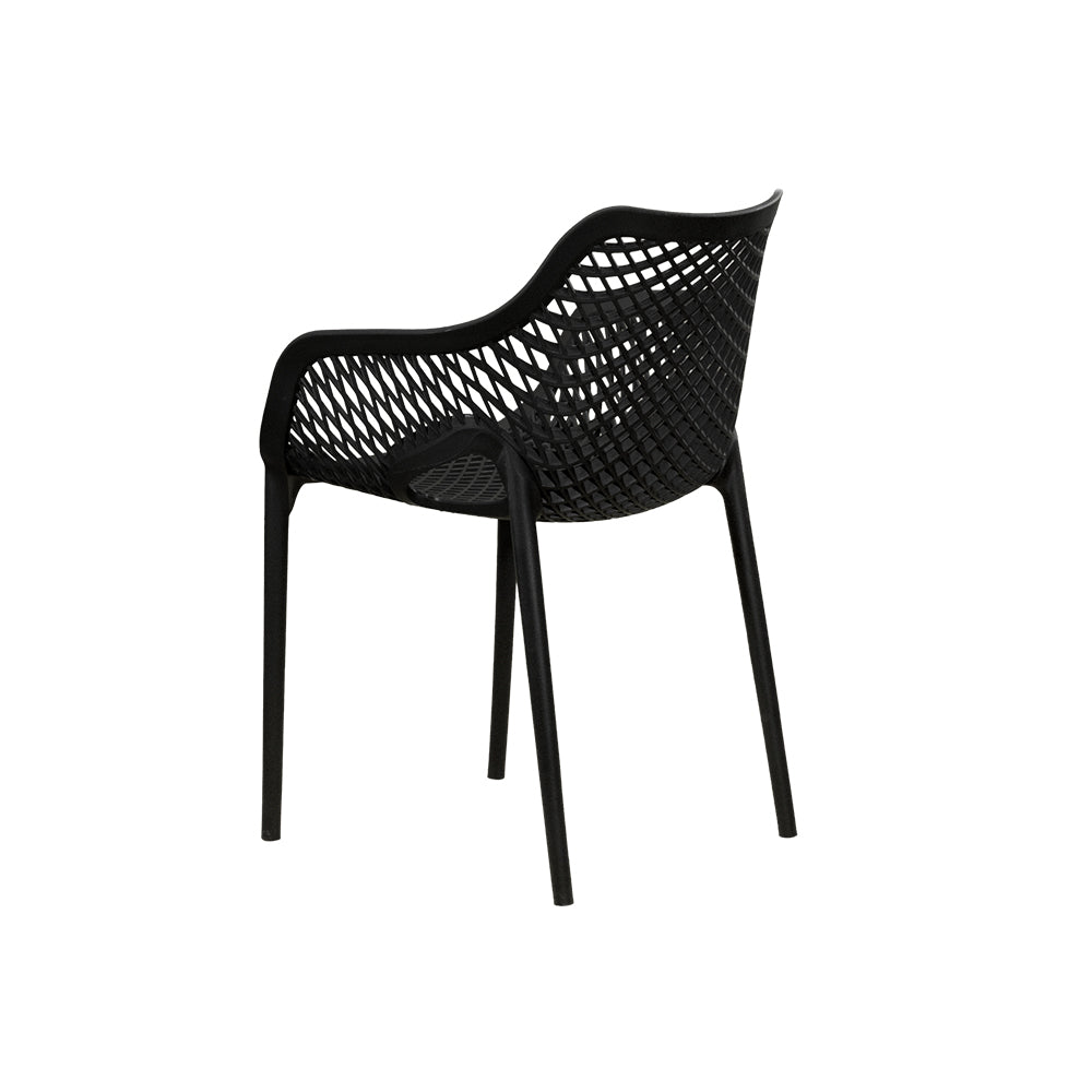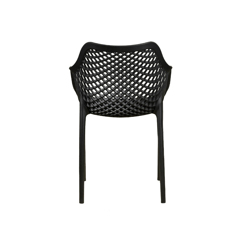 La Silla Elida combina resistencia y estilo en un diseño de polipropileno pensado para soportar las condiciones de intemperie. Su acabado en color negro le da un carácter elegante y versátil, ideal para terrazas, jardines o espacios de hospitalidad que buscan mobiliario práctico y moderno.