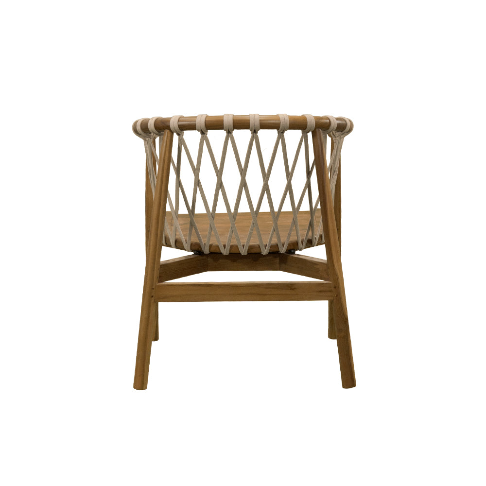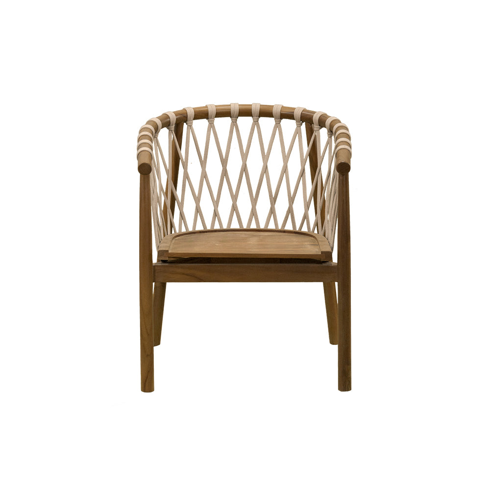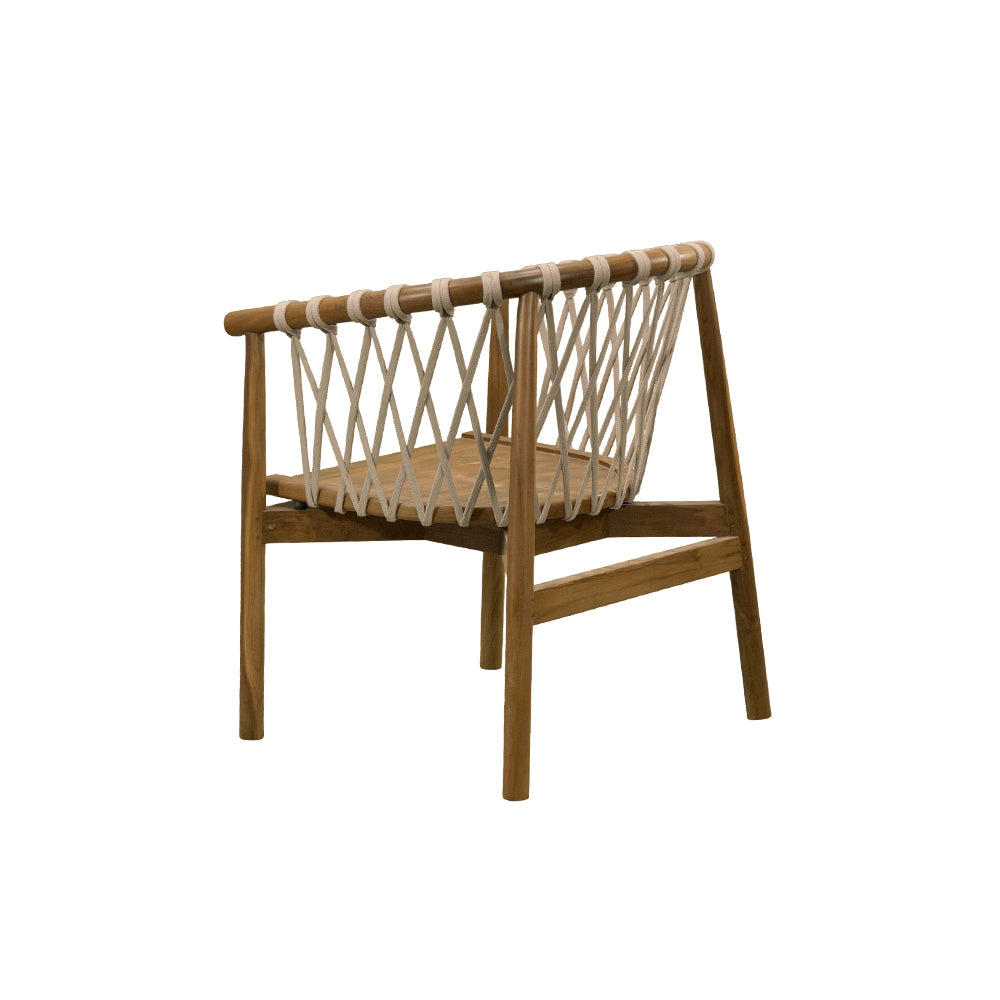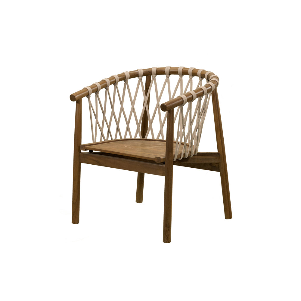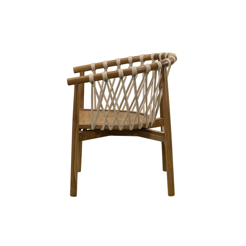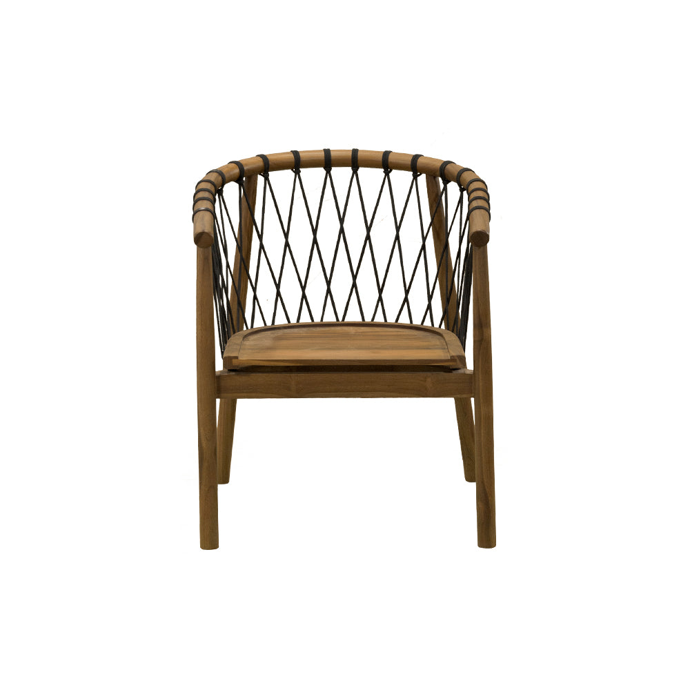 La Silla Crossetta combina la calidez de la teca natural con la modernidad del tejido en cuerda en tonos beige y negro. Diseñada para uso en intemperie, ofrece resistencia y estilo en un mismo diseño, ideal para terrazas, jardines o proyectos hoteleros que buscan mobiliario de alto nivel con un acabado sofisticado y acogedor.