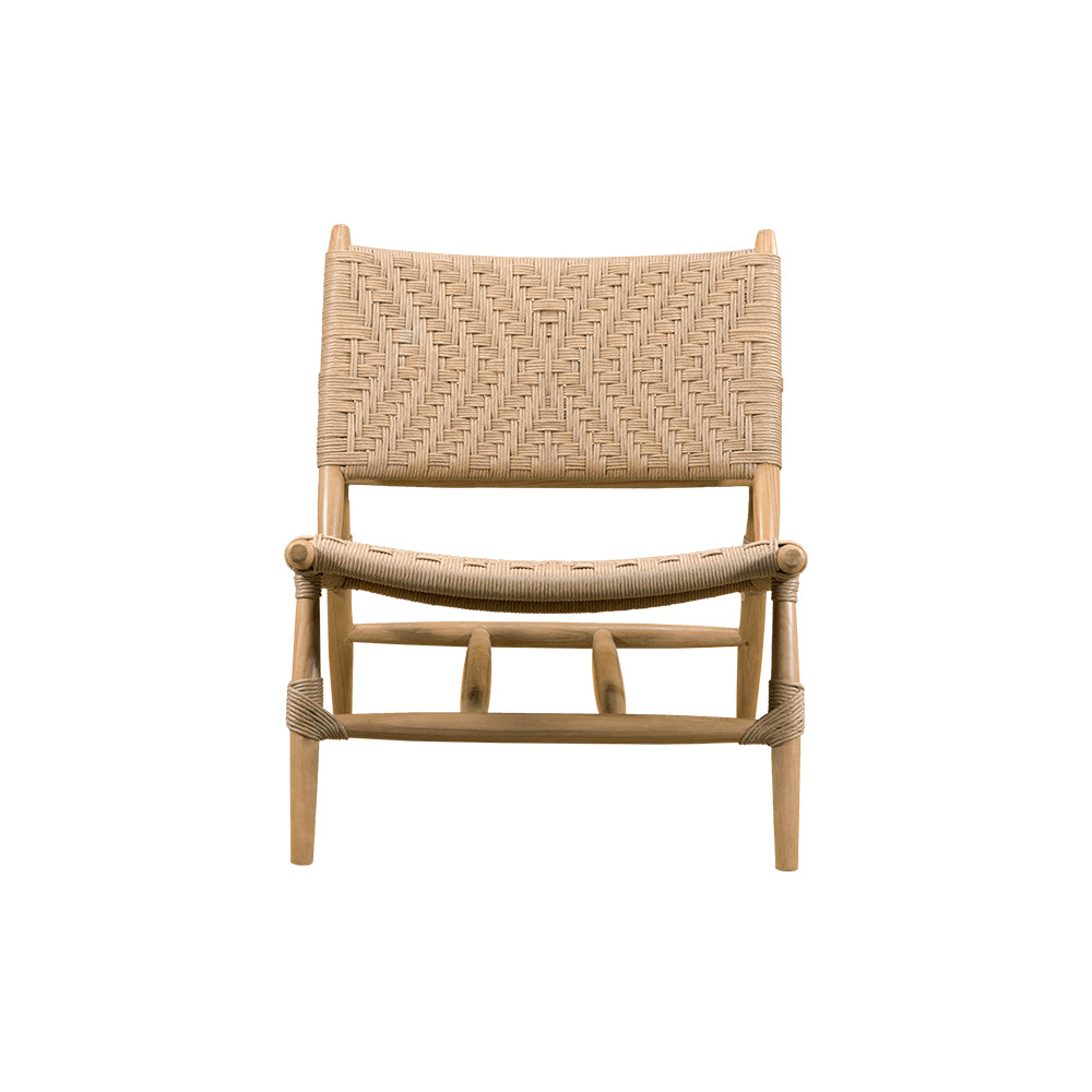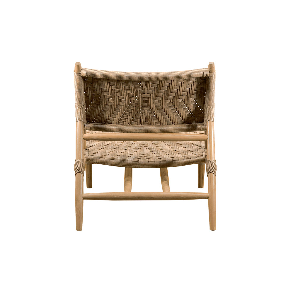 Comodidad y estilo natural para exteriores. El Sillón Martini combina estructura de teca con tejido de polyrattan en tono natural, ofreciendo resistencia y elegancia para uso en terrazas. Ideal para proyectos residenciales o hoteleros que buscan un mobiliario duradero y con carácter sofisticado.
