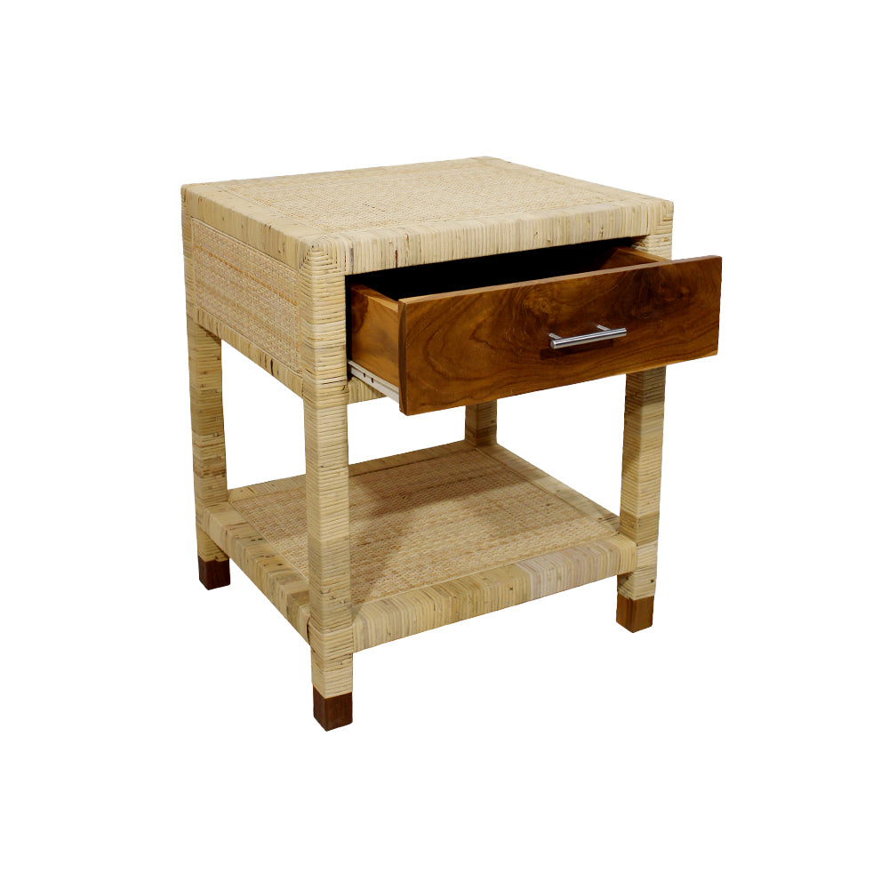 El Buró Flat combina teca y cáscara de rattan en tonos naturales, ofreciendo un diseño elegante y funcional para interiores. Perfecto para complementar cualquier habitación con estilo y calidez.